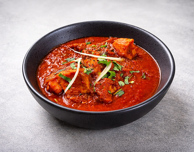 Goat & Lamb Dishes:Lamb Rogan Josh, Lamb Korma, Bhuna Gosht, Goat Curry, and Kadai Goat, slow-cooked for deep, traditional taste.